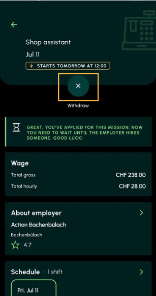 Nach dem Zurückziehen wirst du für diesen Einsatz nicht mehr berücksichtigt.